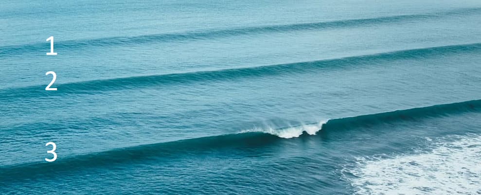 But this swell at #1 is also very fast, not yet slowed down by the bottom of the ocean.